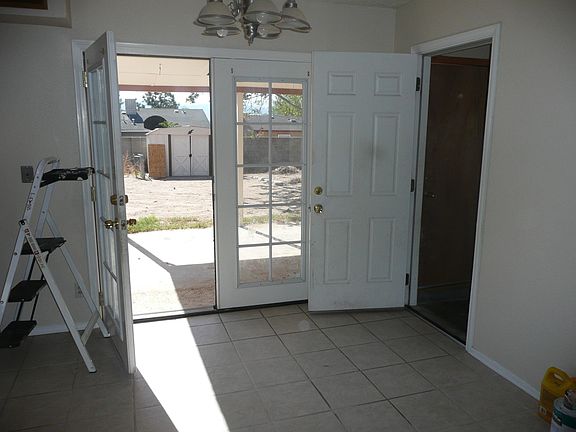 Nice three bedroom two bath home with living and dining area, French doors to covered patio with fenced yard and garage. Home has carpet and ceramic tile throughout. No Pets