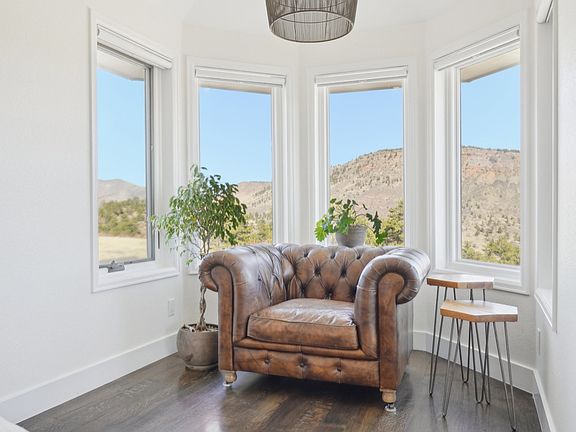 4 bed, 3 bath renovated farmhouse on 35 acres in the coveted Apple Valley Rd area. Spacious open floor plan, expansive windows, views for days. Solar-powered, 2 EV car chargers. 2 acres fenced in w/artist-crafted barn, sheds and chicken coops. All animals welcome! Main level: living room, dining room + cozy TV nook. Fully renovated kitchen w/Viking appliances. Bedroom + bathroom. Mudroom w/laundry. 2 car garage. Top level: primary suite and second bed or home office. Primary suite has fully renovated bath (steam shower, clawfoot tub, heated floors), TWO walk-in closets, views and fireplace. Lower level: bedroom + attached bath. Large den. Second garage for home gym or extra car storage. Outside: huge deck, lower level patio, extensive updated hardscaping, fenced in farm area for dogs, chickens or other animals. You can even go for a hike on your 35 acres! Minutes to downtown Lyons, 20-25 min to Boulder/Longmont, Estes Park and Rocky Mountain National park. Most utilities covered - electricity, gas, water, sewer, trash. Tenant only responsible for cable/internet/phone.