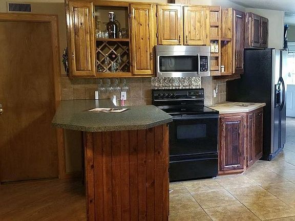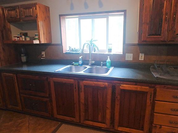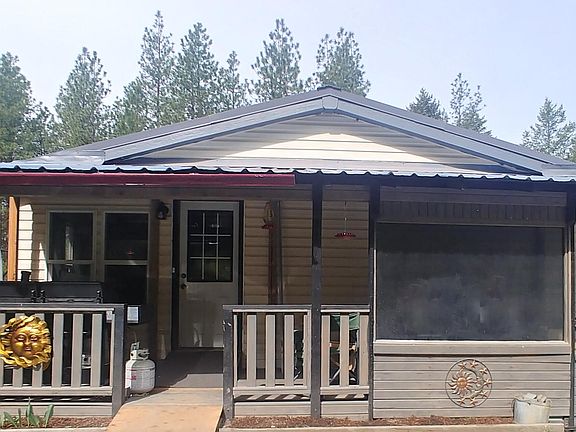 Beautiful Private 7 acres with updated 3 bedroom 2 bath manufactured home. Custom kitchen with solid wood cabinetry with extended drawers , island /eating bar and separate expresso bar. Open dining and living room with large open adjoining family room . Master suite with walk in closet and master bath has a soaking tub and Separate shower. Covered Deck with built in hot tub,. There's a Fire pit , water feature, fenced play area . New metal roof, 16 X18 out building w carport and additional storage shed. This is a very lovely setting.