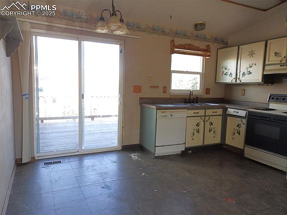 Don’t miss this cozy home in a prime location just outside Fort Carson! With a little work, this home can shine again! The inviting living room features a large window with mountain views and opens to the kitchen and dining area, which walk out to a spacious deck overlooking the large backyard with extra parking. The upper level offers two bedrooms, including the primary suite with private access to the full bath. On the lower level, enjoy a comfortable family room with a wood-burning fireplace, an additional bedroom, and a laundry room with half bath. The attached garage is conveniently accessible from the lower level. Located just minutes from Fort Carson, shopping, schools, and parks, this home combines comfort, convenience, and great value!