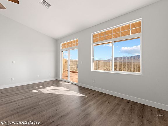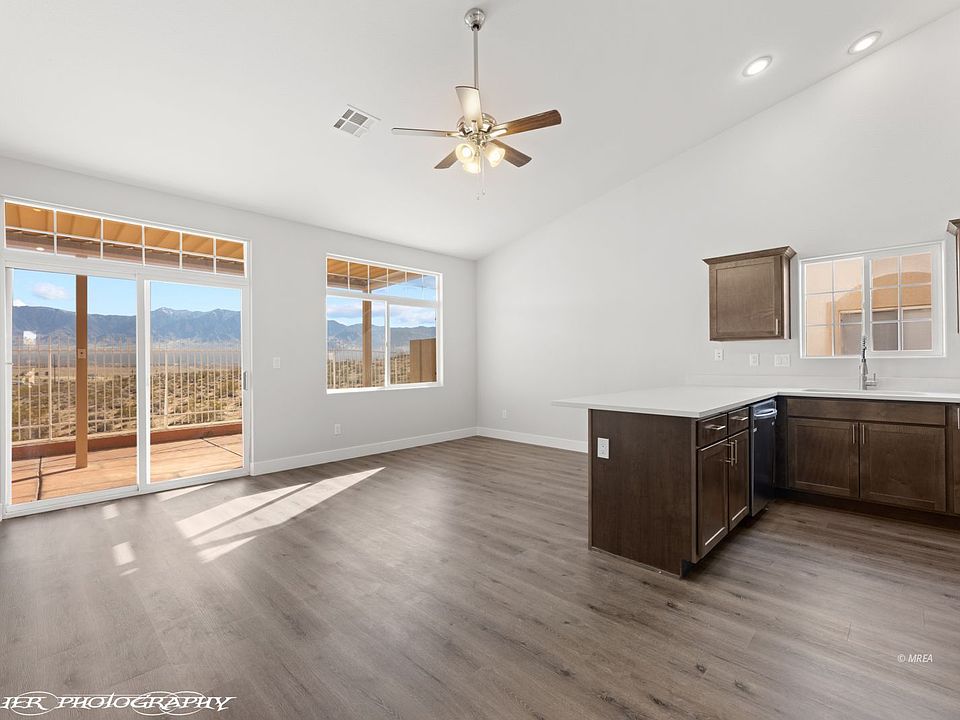 LOCATION, LOCATION, LOCATION! This townhome is located in Scenic View, a quaint community north of I-15. This incredible home site is adjacent to the Arizona border, offering miles of UNOBSTRUCTED mountain, desert and valley views. The townhome has an eastern orientation from the back covered patio and is situated slightly above the natural desert scape. The townhome has just been remodeled with a brand new kitchen, Samsung stainless steel appliances, Quartz countertops, farmers sink, faucet, plank luxury vinyl flooring, 5" baseboards, neutral paint, recessed lighting and ceiling fans. The ceiling is vaulted giving the townhome an open and airy feel. The kitchen bar allows ample room for barstools. The Main Bedroom has a sliding glass door out to the patio and the room size is generous. The guest bedrooms are on the opposite side of the home. The one car garage is convenient for storage and/or a small vehicle. The community has a swimming pool and small club house. Owner/Agent.