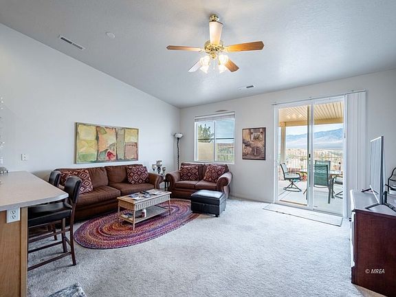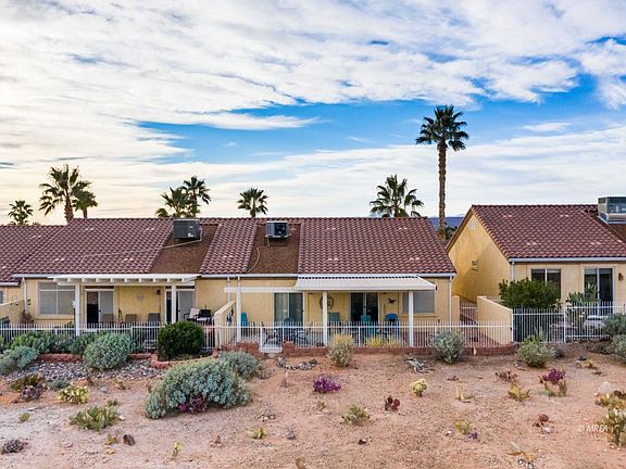 Live in Mesquite with Beautiful Views over Arizona. This Townhome sits right on the Nevada Arizona Border. This is a 1148sq.ft., 2 Bedroom, 2 Bathroom, Single Level Townhouse with 1 Car Attached Garage (approx 240sq.ft.) Big Family Room/Great Room that is open to the Kitchen. All appliances stay with the home including Refrigerator and Washer/Dryer. Large Master Bedroom with walk-in closet. 2nd bedroom is at the front of the home and on the opposite side of the house. The backyard is fenced and has a covered patio with Amazing Views!