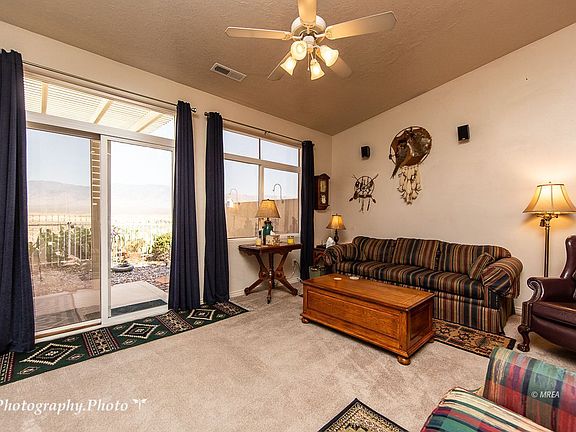 If you're looking for a single story, well maintained town home with endless views of the desert and Eastern Mountains, ready to move into, this is the one! This town home is turn key, with a large TV, a great electric fire place and wonderful decorations. Everything you see stays with the exception of the clock in the living room and the items in the guest bedroom and a few yard art items. Even includes the wine refrigerator. The Eastern backyard orientation gives you the spectacular sunrises to enjoy your morning beverage. Watch the moon come up while enjoying the hot tub on your back patio. The master bedroom has a large slider that goes out to the patio and hot tub. The location is perfect! The kitchen cabinets are plentiful. There is a huge pantry that you don't usually find in a town home. Kitchen has reverse osmosis for drinking water. Water softener is also included. This home has been well maintained. HVAC system was replaced in September 2019. This Spring the air and dryer ducts were cleaned and the Reverse Osmosis was cleaned and sanitized. On top of everything else, there is a one car garage! Don't miss out on this great home!