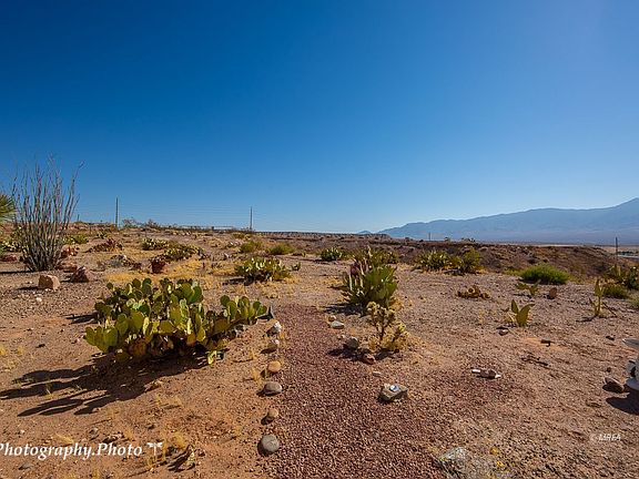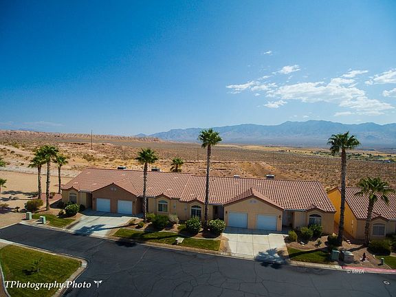 LOCATION, LOCATION, LOCATION! This town home is located in Scenic View, a quaint community north of I-15. This incredible home site is adjacent to the Arizona border, offering miles of UNOBSTRUCTED mountain, desert and valley views. The town home has an eastern orientation from the back patio and is situated slightly above the natural desert scape. Just open the gate and you can walk for miles. As if this wasn't enough, there are no town homes across the street either offering seclusion and colorful sunsets from the front covered porch. The town home has vaulted ceilings and the paint tones are neutral. The kitchen has a contemporary flair with solid surface counter tops, cafe stained cabinets and white appliances. The brushed nickel fixtures and pulls are a nice accent. The lengthy bar allows ample room for barstools. The master bedroom has a sliding glass door out to the patio and the room size is generous. The guest bedroom is on the opposite side of the home. The carpet, lighting and ceiling fans are brand new and all the appliances are included. The one car garage is convenient for storage and/or a small vehicle. The community has a swimming pool and small club house.
