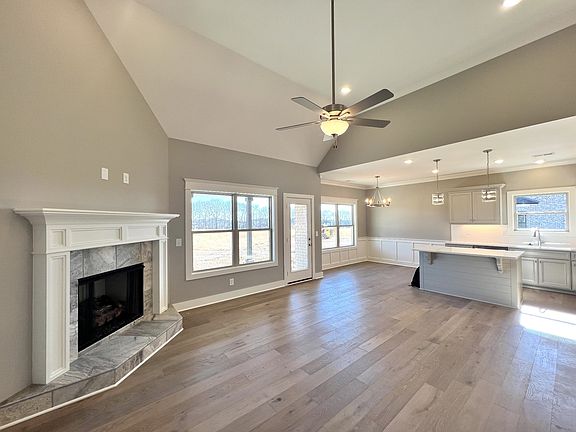Exceptional Quality Construction by Eastland Construction Inc., Skylar floor plan, Living rm w/ Hardwood Floors & Tile fireplace, Island Kitchen with Custom Maple Cabinets, Tile Backsplash, Hardwood Floors, Quartz tops, Microwave, and Dishwasher, Primary BR on Main Level with Large Bath w/ Separate Shower and Large Tub, Double Vanities, & Quartz Tops, Tile in Baths and Full Utility Rm, 24x20 Recreation Rm w/ pre-wired Surround Sound, Covered Back porch and Open Patio Area. Homes its on Amazing 1.45 Acre lot with Excellent view from back porch. Great Closing Cost and/or Rate buy down Preferred Lender Incentive Available.