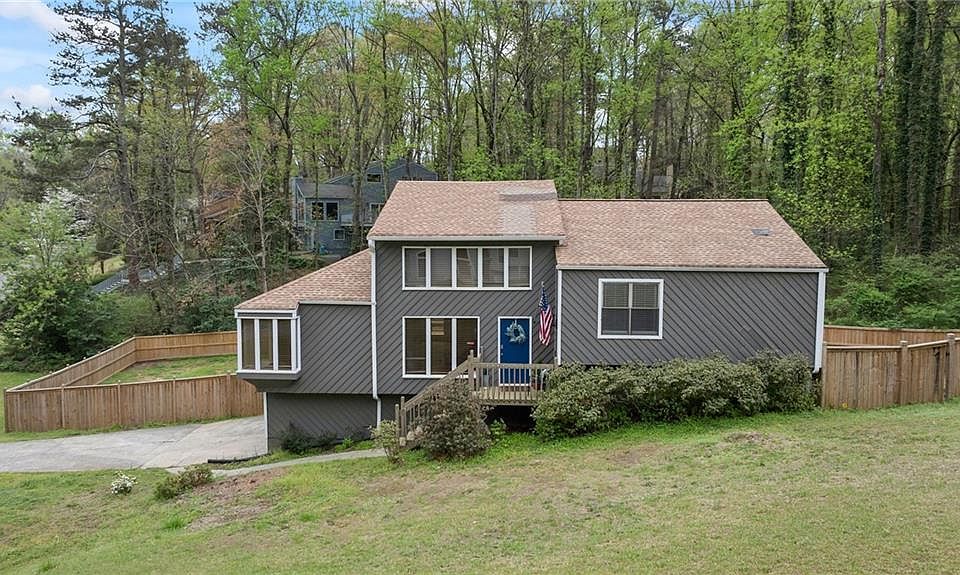 Incredible Opportunity in Top East Cobb Schools – Sope Creek ES, Dickerson MS & Walton HS! Spacious contemporary home offering over 2,600 square feet of living space on a usable fenced 0.6-acre lot surrounded by mature trees for a pretty view and privacy. This home has 4 bedrooms and 3 full bathrooms, new decks, vaulted ceilings, fresh paint, updated flooring, a renovated kitchen that opens to a bright and sunny floor plan. New roof to go on before closing, buyer can pick color! Upstairs, a versatile loft makes the perfect home office or study area. The lower level includes a generously sized flex space and a third full bath—great for guests, a media room, or additional living space. Located in a quiet, established neighborhood with no HOA, just minutes from trails and water activities at the Chattahoochee River National Recreation Area. You'll also love the top-rated schools, shopping, dining, and major highways all nearby.