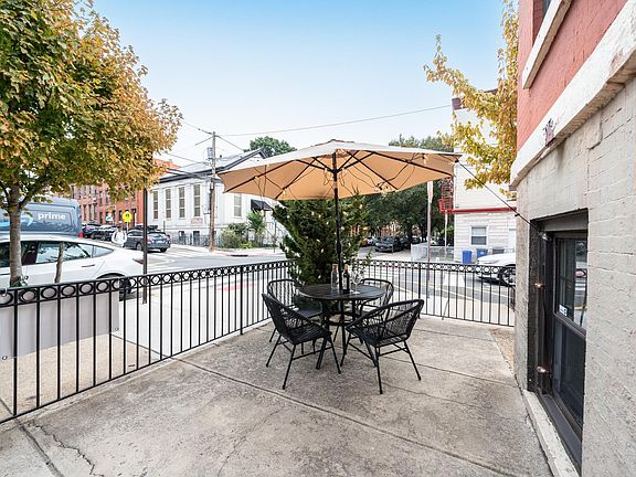 Welcome home to this centrally located, turnkey 2 bed 2 bath 1st floor corner unit condo with your own private entrance, and NOT 1 BUT 2 generously sized, attached outdoor spaces, perfect for entertaining, grilling and dining alfresco! Residence 1, of the utmost convenient Midtown Hoboken location on prestigious Bloomfield, only one block off vibrant Washington St. is waiting for its next owner who appreciates not only the location but the abundance of natural light and space of a southeast corner unit home. With plentiful windows on both sides, an open living concept, and large bedrooms opposite one another for optimal privacy or WFH, every square inch has been thoughtfully designed. The kitchen with its custom stone countertops, subway tile backsplash, stainless steel appliances including gas stove & large french door fridge, custom cabinetry up to the ceiling, opens up to the dining/living room and with direct access out to the oversized corner patio, makes for easy grilling and relaxing in the warmer weather or adding add'l outdoor storage bins. Rounding out this historic row house condo, Residence 1 has tons of storage with 2 walk in closets with new custom organizers, brand new sump pump (2022) to avoid flooding, central AC (2022) plus 3 ceiling fans to cool you off, a space saving, tankless hot water heater for instant hot water, recessed lighting, durable "woodlook" tile floors throughout, beautifully updated baths with wainscotting, & full size stacked laundry in unit! This stellar location lends itself to Hoboken’s endless high end restaurants including Anthony David’s, Margherita’s, artisanal cafes, upscale boutique shopping & transportation options including the 126 bus to Port Authority, PATH trains, and ferry that make the great Mile Square such a fantastic place to call home! Parking can be easily rented at 916 Garden just a few blocks away. Newer Crate & Barrel fold out dining table + butcher block island and stools that fit the kitchen/dining space perfectly are negotiable for the next owner as are all Brand New patio furniture!