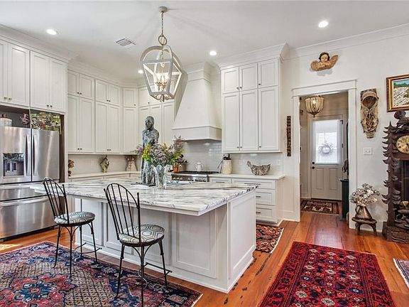 Seller IS Offering to Pay $5000.00 Toward Purchaser's Insurance at act of sale @ a price acceptable to seller. FABULOUS 3 YR NEW CONSTRUCTION, 4 Bd, 3.5 Ba, plus office, mud area, upstairs loft, large pantry and laundry, 11 ft ceil down, 10 ft ceil up; Heart pine floors downstairs, engineered pine wood floors up, stunning primary suite down with huge closet, tub and shower, high end lighting fixtures, custom cabinetry to the ceiling in kitchen; Thermador gas stove and appliances; surround sound, security cameras. Owner has added custom iron gate and fencing, custom iron auto gate for double driveway, storage shed, carport, and beautiful fenced brick patio. Lace curtains and rods in home are not included. Flood Zone X