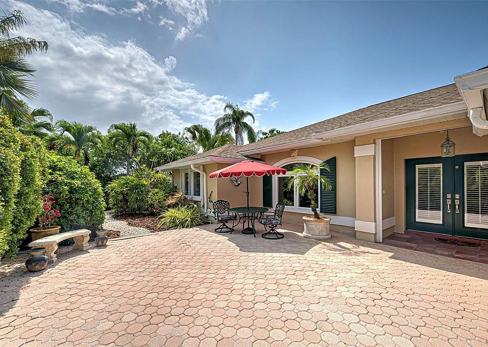 Welcome to your private oasis, complete with a meandering pathway that leads you through a lush landscape, guiding you from one enchanting nook to another. Along this journey, small, cozy seating areas emerge amidst the greenery, inviting you to pause and soak in the tranquility. These intimate spaces can be designed with comfort and style in mind. This FULLY FURNISHED 3-bedroom, 2-bathroom, 2 car garage, pool home is situated on a large lot in desirable south Venice!!! In 2022, the home was enhanced with a NEW ROOF, adding to its value and providing peace of mind for years to come. You are sure to enjoy this completely private swimming pool with inviting crystal-clear waters, secluded from the outside world. And have peace of mind with a FULL HOUSE REVERSE OSMOSIS SYSTEM! This personal haven offers an unparalleled level of privacy. The large master suite has two walk-in closets, a beautiful ensuite with a modern soaking tub/shower combo and double sinks. Off of the master suite is a private pergola with an outdoor shower that becomes a standout feature, promising a blend of luxury, comfort, and connection to the outdoors. This thoughtful inclusion makes this home not just a place to live, but a retreat to look forward to returning to every day. The two guest bedrooms along with a guest bathroom can be closed off from the rest of the house. This setup is great for family or guests with their own secluded area, increasing additional privacy to help maintain daily routines without considerable disruption. This gorgeous home boasts an array of modern upgrades that blend seamlessly with its elegant design, ensuring both style and functionality. Inside, the kitchen and bathrooms feature solid surface countertops which are not only aesthetically pleasing but also known for their durability and ease of maintenance. The living spaces are adorned with luxury vinyl plank flooring. The elegance continues with detailed crown molding throughout the home, adding a touch of sophistication and character to each room. Completing the luxurious feel are plantation shutters on the windows and sliders. These features together make this home a perfect blend of modern upgrades and classic comfort, ideal for anyone looking to move into a space that’s both beautiful and functional