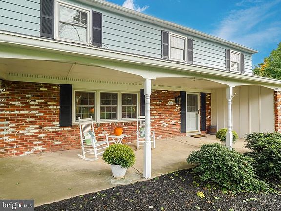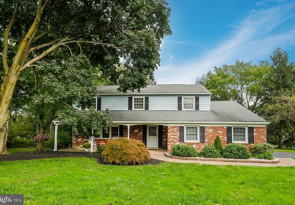 Located in a quiet neighborhood with sidewalk-lined streets you will find this lovely home situated on a large lot within the award winning Pennsbury School District. With the character of brick accenting a long covered sitting porch you come inside to be greeted by a spacious foyer. The formal living room offers a long bank of windows and allows for varied furniture arrangements as the wide entry to the dining room provides an easy flow for entertaining. The green backyard views are taken in while dining as the two-tone appeal adds an element of elegance accented by chair rail molding. With a large breakfast room including a built-in desk area the kitchen is designed as the heart of the home. The peninsula island and cabinetry present a classic contrast of white and dark that is warmed by the hardwood-look floors. Step down to the family room where a full wall of brick frames the fireplace, the exposed beams and long built-in adds an ambiance of charm and two skylights bring in a soft infusion of natural light. The exterior door leads to the paver patio, while a few steps away you have a remodeled powder room, laundry room w/cabinets and laundry tub, and the entrance to the spacious side entry two-car garage. The upper level hosts four bedrooms and two remodeled full baths. The owner's suite features a generously sized bedroom with soft, serene appeal, a customized walk in closet and recently updated private bath including a wide step-in shower enclosed with sliding glass doors. Three additional bedrooms are all nicely sized and have ample closet space. A sizeable common bath is highlighted by wainscoting, marble vanity and tiled tub with shower area. An expansive, tiered paver patio creates a beautiful outdoor living area to enjoy the peaceful oasis style backyard with a variety of indigenous trees that will create a colorful autumn display. Just minutes from the township recreation area and pool, and the historic district of Yardley, this well-cared for home is