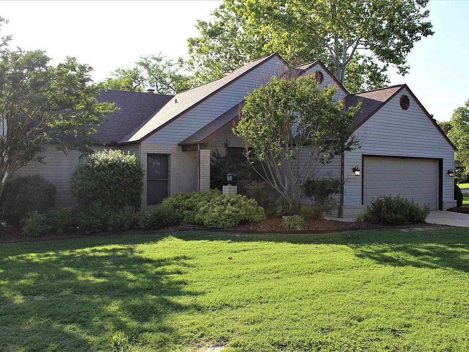 This remarkable one level home with three bedrooms (potentially 2 masters), three bathrooms, vaulted ceilings, a steam shower and Jacuzzi tub in the master bath, and a walk-in cedar lined closet, offers a luxurious and peaceful retreat nestled in Village Green on a large corner lot. The expansive living areas provide the perfect setting for entertaining or relaxing with family. Large office or playroom, smaller office or nursery. Heated and cooled crawlspace with area for dog to get out of the weather. 1 year membership to Twin Lakes Golf Course included with sale of home.