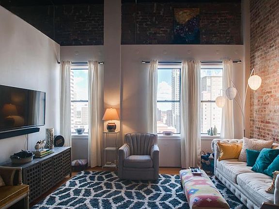 RARE 2 bedroom penthouse loft with soaring 14ft ceilings and fantastic skyline views in the historic Bennie Dillon. 2nd bedroom also has convenient storage loft. 24 hour fitness center, newly renovated social space, 2 deeded, premium parking spaces (#700 and #803)