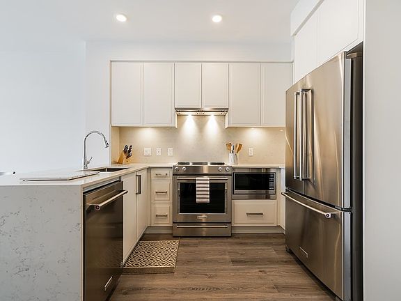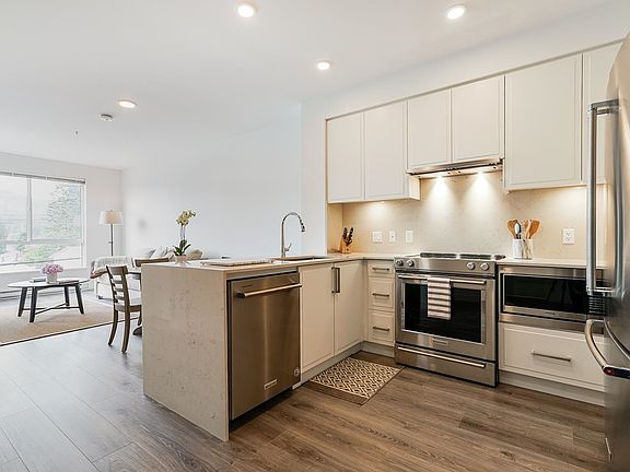 Welcome to Vista Condos, the Georgie Award winner for best low rise development in 2022. Enjoy stunning mountain views in this spacious 1 bedroom home. The space is efficiently laid out across 602 sq ft with premium laminate flooring throughout, high end quartz countertops, and over height ceilings. It is one of the few adaptable units in the building, meaning it has a wider entrance, larger bedroom, wider U shaped kitchen, and a larger bathroom. You'll never get bored living here in the heart of Burquitlam. You're only a 10 minute walk to the Safeway and Burquitlam Skytrain Station. You're also close to Lougheed Mall, Rocky Point Park, the heart of Port Moody, highway access. Without a doubt, this is one of the best condo buildings you'll find in Burquitlam! (Rental and Pet friendly)