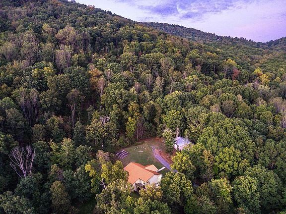 Outdoor enthusiasts retreat with 53.48 acres nestled on Tobacco Row Mountain! An abundance of freshwater springs, creeks, beautiful waterfalls & towering trees adorn this scenic property! Your outdoor playground with exceptional views, trails throughout and logging roads. Open floor plan boasts 3,509 square feet, 4 bedrooms & 3 bathrooms. Chef's dream kitchen is updated & has commercial appliances. The living & dining rooms have 17.5' ceilings & the library/cafe are all flooded with natural light. The detached 40x32 garage has separate underground electrical service & rough-in for future full bath expansion. Outdoor spaces galore with a deck off the master, second deck off the spare bedroom, rocking chair front porch & large back deck off the great room! This is your outdoor oasis only 20 minutes from downtown Lynchburg in a great location w/ unrestricted land use! An adjoining 6.15 ac tract with electric is also available. Call for a list of updates & to view this incredible property!