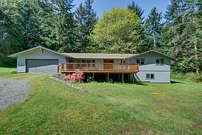 5+/- private acres abounding in sunshine await the buyer looking for a spacious 1-level home. Enter from a lg deck to a spacious, inviting home featuring oversized living room, more than ample kitchen counters & cabinets with sitting area by a wood stove. Access one of the 2 decks from the dining room as well as the master. Sit, relax and enjoy the peacefulness of the surrounding forest and all its creatures. Finish off this ideal setting with a 3-car detached garage with shop area & woodstove.