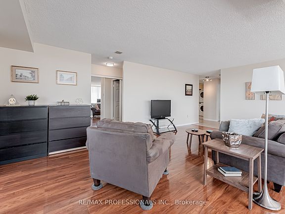 Welcome to Constellation Place where comfort meets convenience in the heart of Mississauga. This beautifully updated 2-bedroom + solarium, 2-bathroom corner suite offers over 1,400 square feet of bright, open living space. The smart split-bedroom layout is enhanced by wall to-wall windows that flood the home with natural light and offer stunning panoramic northwest views. The spacious living and dining rooms are perfect for entertaining or relaxing, while the sun filled solarium has been seamlessly integrated into the living space, offering the flexibility of a den, office, or reading nook. A galley-style eat-in kitchen boasts updated cabinetry, extensive counter space, and large windows perfect for those who love to cook or host. The expansive primary bedroom features a walk-in closet and a 4-piece ensuite with a soaker tub. The second bedroom is also generously sized and paired with a fully updated bathroom. Engineered hardwood floors run throughout no carpet anywhere. Enjoy peace of mind with all-inclusive maintenance fees that cover TV, heat, hydro, water, cable, and building insurance. This very well-managed building is loaded with resort-style amenities: indoor pool, saunas, hot tub, gym, indoor squash/racquetball, outdoor tennis/pickleball courts, party room, guest suite, BBQ area, gazebo, dog park, extensive visitor parking, and 24/7 concierge. Located on a quiet cul-de-sac and surrounded by every convenience imaginable walk to groceries, restaurants, banks, shopping, and transit. Minutes to Highways 403, 401 & 407, Square One, and Heartland. One underground parking spot included. This is one of the largest units in the building space, light, and value all in one. Don't miss this incredible opportunity!