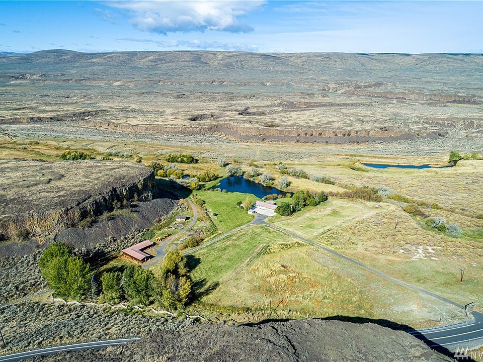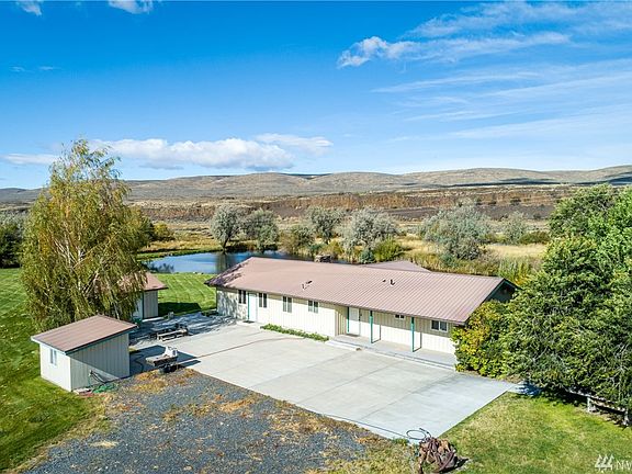 Truly one of a kind property with so much to offer! Home, shop, barn, cabin, outbuilding, two ponds full of Rainbow Trout, year round stream, 2,500 foot airstrip, 10 irrigated acres ready to farm, all on 114 acres surrounded by Conservancy Land. So peaceful & quiet. Sit in your living room and gaze at the beautiful pond and sunset with the Coulee in the backdrop. The property has been used as a wedding venue, nightly rentals possible. Area allows marijuana and hemp farming, buyer to verify