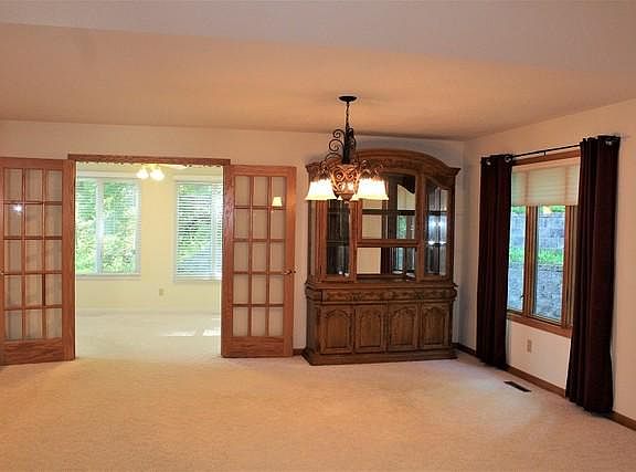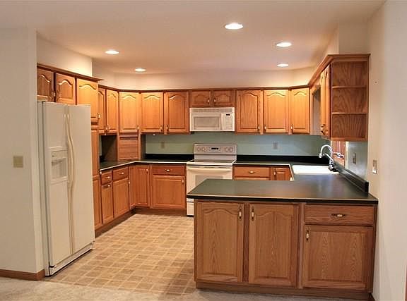 Move in ready! Spacious, open living area includes the living, dining and 4 season room with wooden French doors. The main level features no step entry, 6 panel oak doors, vaulted living room ceiling and special features in the kitchen. The Kraft Maid cabinets have dove tail drawers, pull out shelves, appliance garage and tucked away garbage can drawer. The finished lower level has two non-conforming bedrooms, 17' x 28' family room, bath and kitchen area present owner used for canning and outside entrance. This unit was designed with lots of storage up and down! Call to arrange a look!