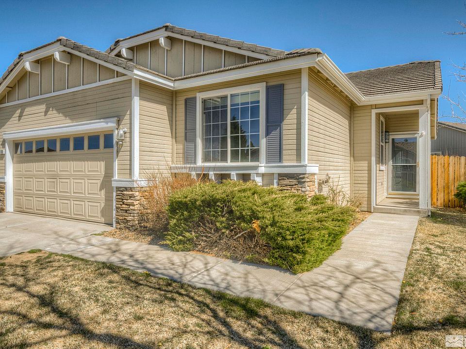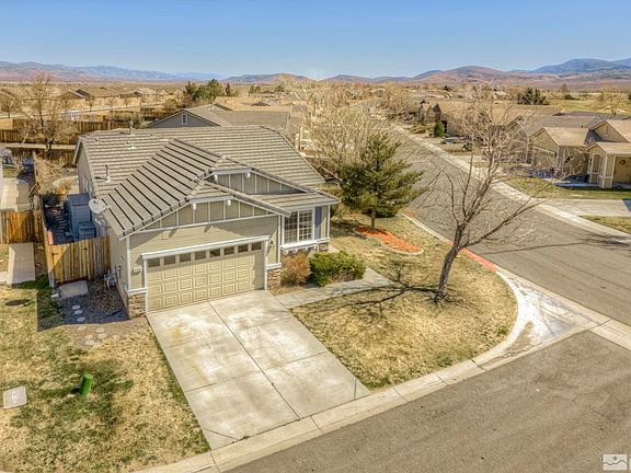 Experience resort-style living in this well-maintained home located behind the gates in the Dayton Valley Golf Course community. Situated on a large corner lot in a quiet cul-de-sac, this property boasts a trusted tile roof, updated luxury vinyl plank flooring, and plenty of natural light throughout. The backyard is an oasis, featuring a sparkling in-ground private pool, perfect for entertaining and relaxation. The fully landscaped yard includes automatic sprinklers, mature trees, and a spacious patio., The primary suite has access to the backyard, a huge walk-in closet, double sinks, and an updated walk-in shower. The split floor plan provides privacy with a secondary bedroom and bathroom located at the front of the home, as well as a den off the great room. Don't miss out on this opportunity to own a stunning home with a private pool - it won't be on the market long! Lyon County reflects a 3 bedroom home, however, this floorplan is a 2 bedroom with a den. A closet could easily be added to make it a true 3 bedroom. Pool heater was replaced in June, 2019. Pressure switch replaced in May, 2022. HVAC Condenser and capacitor replaced in 2019. A 3D Tour is available via the Tour Link!