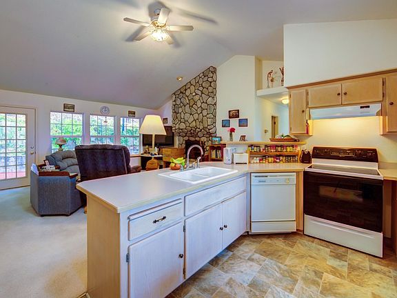 Beautiful Country Setting! Sitting on 5 acres with Wonderful mountain/valley views and a gated paved driveway. This home was built in 1996 and has been well maintained. Newly painted on the exterior and decks. Home features 3 bedrooms, 2 bathrooms, approx. 1262 sqft., open kitchen w/skylight, double sinks, refrigerator, range/oven, dishwasher and lots of cabinets. Large living room w/vaulted ceiling, fan and rock fireplace from floor to ceiling. Master bathroom has a tile shower, separate soaking tub and double sinks. Covered deck in front with great views and another large deck in back. There is an attached 2 car garage. RV parking and room for other toys. Partially fenced and room for a shop or large garden. Call today!