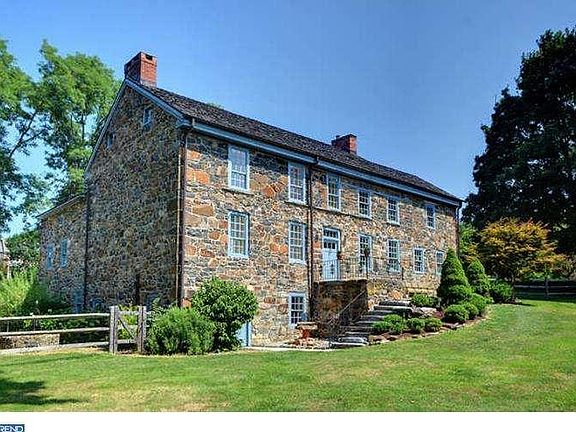 Take a step back in time and own a piece of history. The original "John Cope House," circa 1726 is a Georgian Stone Farmhouse. This stone farmhouse has been completely restored. This historic home is a masterpiece of colonial and contemporary craftsmanship and features satin finished hardwoods that include chestnut, poplar, pine and oak. The home comes with 5 fireplaces with constructed wood mantles. The fabulous kitchen comes with state-of-the-art commercial grade appliances and a hearth room with stunning double fireplaces. The curved stone walls with rich texture and deep window sills are some of the outstanding features of this home. Box stairs or Penn's stairs that allow entry up or down to different wings of the home. The spacious master bedroom comes with a walk-in closet and cedar closet. The master bath has Pennsylvania Slate floors, whirlpool tub and separate shower. Private courtyard for outdoor entertaining is located off the lower level. Radiant heat and A/C over several zones. Finished basement, NEW two-car garage, and fully fenced yard. The sycamore tree in the yard is over 300 years old! This home has been on the Chester County Day tour. Be sure to add this one to your list!