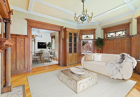 Built by acclaimed architect Benjamin Driesler in 1903, and then meticulously renovated by the current owners, 700 E 17th street has been thoughtfully redesigned to blend modern features with stunning original detail. This light-filled, turnkey home has pristine restored details throughout, including stained glass windows, a floor to ceiling pier mirror, beamed ceilings, dramatic original moldings, and bay windows on all sides. With an open layout that today's homeowner desires, the parlor floor has an ideal flow for entertaining and an expansive modern lifestyle. This main floor has a large, eat-in kitchen boasting top of the line appliances with lots of storage space. There is a windowed powder room and central air on this floor, two separate living rooms, and a beautiful formal dining room. Upstairs, find 6 well-proportioned bedrooms including a sprawling primary suite with an ensuite spa bathroom, and walk-in custom closet. On the lower level of the home there is a spacious in-law suite with a separate entrance so you'll have plenty of room for guests to come and stay. The landscaped garden around the property and the extensive wrap-around porch create a serine private oasis. This is a rare opportunity to own a magnificent, renovated and grand Ditmas Park Queen Anne single family home located in the Fiske Terrace Midwood Park Historic District. Located on an idyllic corner of one of Ditmas Park's most bucolic enclaves, right on the Flatbush Malls where there is plenty of space to roam and relax. With great amenities nearby, as well as the B/Q express train at charming Newark Plaza-the oldest open-air shopping mall in the country. Some images have been virtually staged.