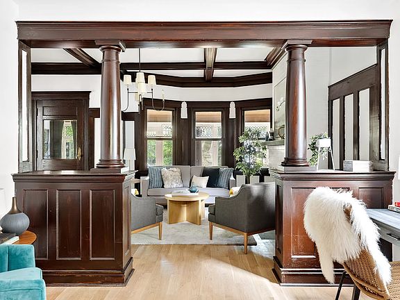 Rare opportunity to own a renovated home in the historic Ditmas Park neighborhood! Stunning contemporary design seamlessly integrates with classic elegance in this expansive 5 bed/2.5 bath (with option to add another bathroom) showstopper situated on a 5,000 sq ft lot, offering plenty of space for gardening, hosting a barbecue, or enjoying views of mature trees from the oversized screened porch featuring restored original hardwood floors and stained glass windows. Beautifully remodeled to showcase the original Victorian character, rich decorative woodwork, pocket doors, and stately fireplaces flowing throughout the interior amid white, modern elements for a bright and fresh feel. Enjoy relaxing by the fire in the living room or move to the formal dining space for a lavish meal. The immaculate gourmet kitchen features chef quality appliances, a farm sink, and an expansive center island, while an additional seating area provides open-concept living and dining. A finished lower level offers additional space with endless opportunity for a play area, home fitness center or entertainment room, while the second story hosts an incredible primary suite and three additional bedrooms. The third floor showcases cathedral ceilings in the hallway and offers several layout options including a secondary suite with an added bathroom, walk-in closet space and a home office. Enjoy a country like setting in the large yard complete with a patio and deck that's perfect for hosting large groups. Situated on a gorgeous block with old growth trees it's conveniently located to Newkirk Plaza which provides easy access to the many restaurants, specialty shops, and the Q and B trains.