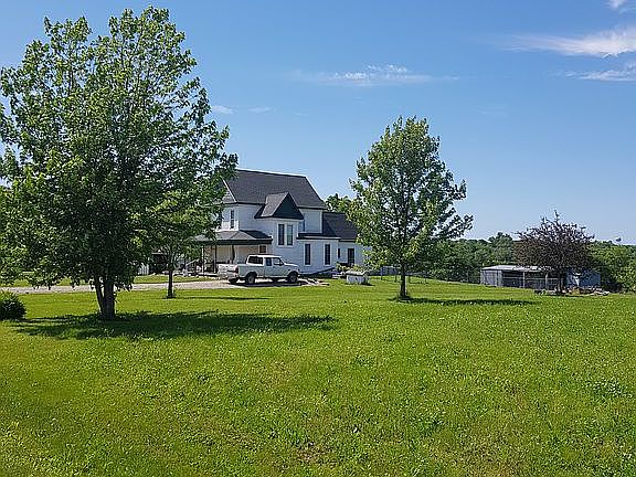 Nice, quiet setting on the outskirts of Horton. Large, welcoming front porch, solid structure, ideal for country living. Must see to appreciate. 5 acres +/- of land with pond, partially fenced, ideal for cattle or horses. Mostly new windows that are double-paned. City electric, sewer and water but does have a working well. Foyer with closet and newly remodeled stairwell. The second floor has been completely redone in the last two years including handmade pine doors. New duct work and nice partial basement. Lot includes six fruit trees; two pear, two apple and two peach (all producing) as well as a grape vine. Woodmaster outdoor wood boiler that will burn for 12 hours on one fill, keeping the house at 72 degrees. Can easily be made to heat the hot water for the house as well. House also has a water softener and a whole house filter.