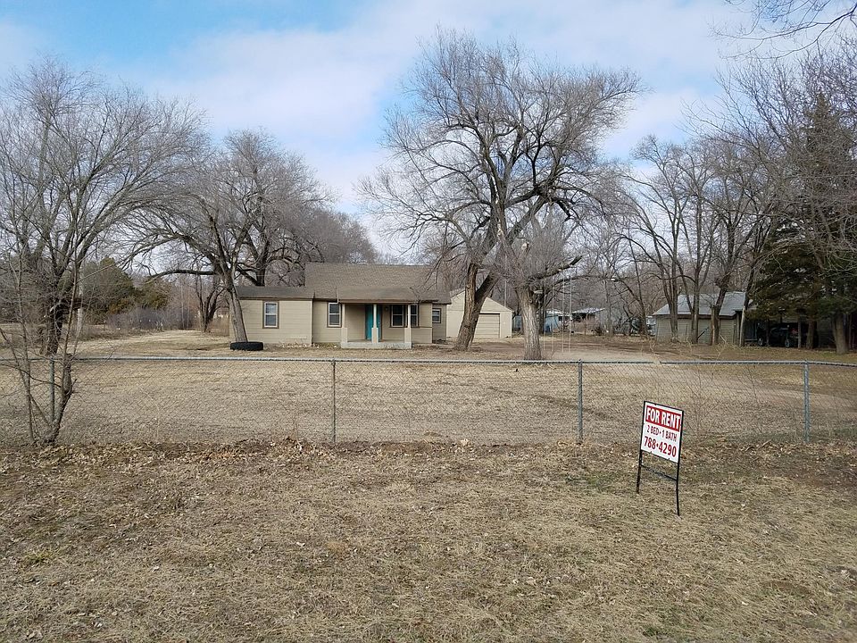 2 bedroom 1 bathroom with detached large shop. Front bedroom is good size. Dining room between kitchen and living room. 1 pet allowed with restrictions. Waher/dryer hookups. Central heat and air. Owner can supply stove. Huge detached shop. Home sits on over an acre. Well water. Tenant pays all utilities.