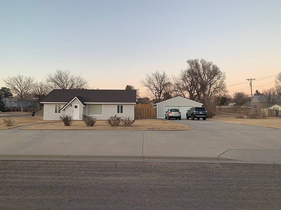 This 1/2 Acre lot with a concrete horseshoe driveway & landscaped yard offers a 1408 sq ft home with 3 bedrooms,1 bath and a 2.5 car detached 24x24 garage. Completely renovated in 2022. Renovations included Plumbing, Electric, HVAC, Windows, Sheetrock, Fixtures, Appliances (all will remain), Water Softening system, Hot Water on Demand, Flooring, Cabinets, Countertops, Interior & Exterior Paint, a Sprinkler System for the Landscaping and Privacy Fence. Call to schedule a viewing today!
