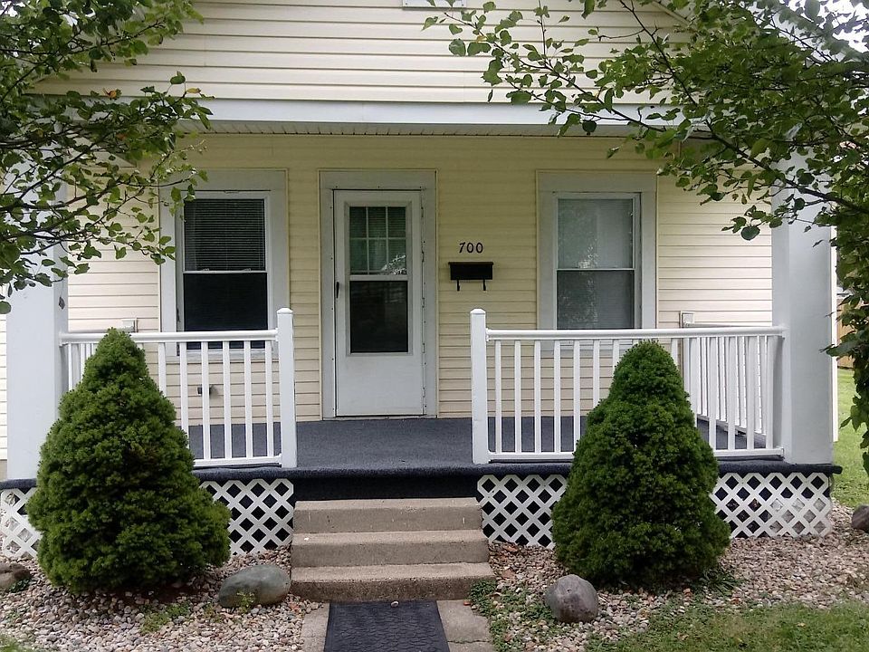 large yard with storage shed. Vinyl siding. Grocery, convenience/gas, Dollar general, CVS, restaurant all walking distance. stainless range, dishwasher, ref/freez. Laminate flooring and carpet in brs. $750 deposit. No inside smoking. One small dog or cat. Tenant pays utilities.