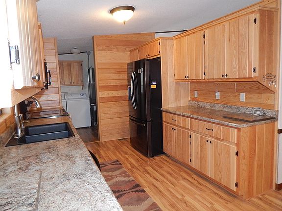 Spacious manufactured home in Payson on 0.23AC with tall pines on fully fenced lot. Three bedrooms, 2 bathrooms, 2+car garage with an additional workshop! 1456 sf with enclosed porch and wood burning fireplace. Home comes with refrigerator, washer & dryer, electric range and so much more. Vaulted ceiling in the large living area. Home is being sold furnished. Metal roof and heat pump were installed in 2014.