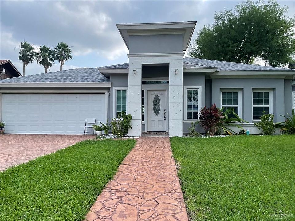 Beautiful 4 Bedroom 2 Bath home in excellent location in Hidalgo. Home is directly across from park with a splash pad. in addition to the 4 bedrooms it includes an enclosed garage that makes a great 441 sqft bonus room or 5th bedroom. (total living 2082 sqft!) Home was built in 2019 and is in great condition with tile throughout, high ceilings, quartz counters in kitchen and bath, and large kitchen island. Only 1 mile from the international bridge.