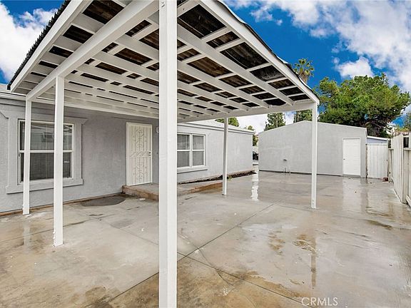 Welcome Home! Super clean corner lot 3bed/2ba manufactured home in the desirable Rancho Mediterranean gated community, located at the base of Grand Terrace and the 215 freeway. This home is very unique. The driveway can park 2 vehicles in addition to the 2 car garage, plus 2 extra parking spaces across the street of the property for your guests. It also has a completely equipped restroom in the Master Bedroom for disabled individuals with a ramp and a walk-in tiled shower. The dining room area is adjacent to the kitchen and living room areas, stainless steel appliances included. Spacious and low maintenance yard with a covered patio area. Very low association fee's with great amenities. Pool, kids play area, picnic ground, and club house to hold large gatherings. This is not a mobile home park, YOU OWN THE LAND!