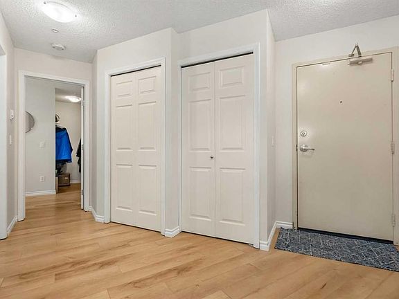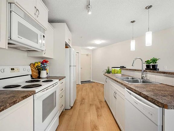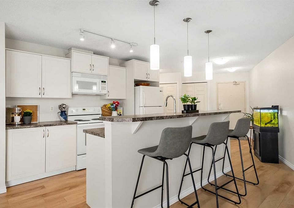 Welcome to #2121–700 Willowbrook Road, located in the vibrant community of Willowbrook, Airdrie! Here you will discover effortless living in this bright and beautifully updated 2-bedroom 2-bath condo which is a perfect blend of comfort, convenience and value. As you enter, you’ll be impressed by the abundance of natural light streaming in from the SOUTH-EAST EXPOSURE. Stylish new vinyl flooring (2024) leads you through a welcoming front entrance, complete with a spacious coat closet featuring built-in shelving. Stepping into the kitchen you will love the open-concept design with generous storage, a pantry, a NEW DISHWASHER (2024) and a large island with room for bar stools, creating the ideal setting for casual meals or entertaining. Just off the kitchen is space for a formal dining table, a RARE feature in apartment living. The living room is bright and inviting, with plenty of room for friends, family and nights in. This versatile living space offers many ways to layout your furniture, with the option to mount your TV on the wall with swivel to be visible from the sofa and the kitchen. A notable feature is that the entire unit has been FRESHLY PAINTED (October 2025) in a beautiful off-white tone that enhances the natural light. The primary bedroom is a true retreat. It features a large WALK-IN CLOSET with built-in shelves, plus an additional closet with bi-fold doors that can serve as extra storage or linen space. The four-piece ensuite bathroom includes a new toilet (2025). The room easily accommodates a king-sized bed with plenty of space to spare and offers a large window overlooking the private balcony. A SECONDARY BEDROOM with a large window provides versatility and can serve as a guest room, office or fitness space. A second three-piece bathroom with a stand-up shower, new toilet (2025) and convenient IN-SUITE LAUNDRY complete this well-designed home. For added peace of mind, the BOILER SYSTEM for the IN-FLOOR HEATING was REPLACED in (2024). Stay warm in the winter months with your TITLED, UNDERGROUND PARKING STALL. There is also an abundance of outdoor VISITOR PARKING for your friends and family to visit. The condo fees conveniently include everything except electricity (covering heat, water, landscaping, snow removal, professional management & more). Living in Willowbrook means having the best of both worlds - easy access to all of your essential amenities nearby including Main Street, Shoppers, Sobeys, Original Joes, Good Earth and more. From your building, you can also step right into the extensive walking paths of NOSE CREEK PARK to enjoy all year round, ideal for pet owners. A standout feature is the complex’s FLEXIBLE PET FRIENDLY POLICIES, offering peace of mind for pet owners. Whether you're a first-time home buyer, downsizing, or an investor searching for a fantastic move-in ready home, you have found it here. This apartment offers exceptional value with its recent updates, thoughtful layout and inclusive condo fees. Book today!