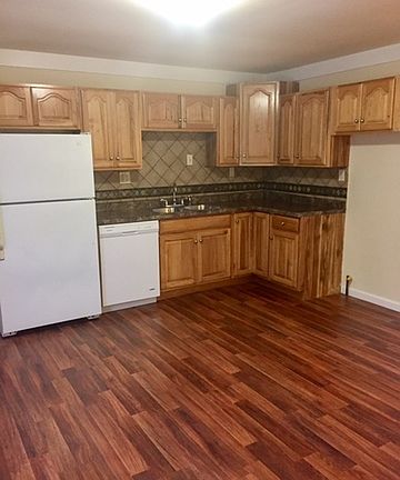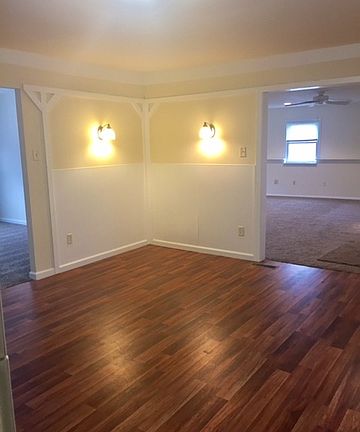 Over 1700 Square Foot Ranch with 2 Car Detached Garage across from Woods! Large front deck leads to this updated ranch home - spacious - living room, full guest bath, 3 bedrooms, new 1/2 bath, updated kitchen with beautiful cabinets - new counters - custom back splash & new laminate flooring, laundry room w/ door to back yard, huge rec-room, new flooring throughout, fresh paint, vinyl tilt-in windows & blacktop drive.