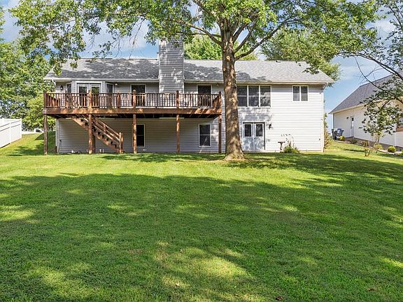 This home has the hard things to find - Beautiful, .57 acre lot backing to woods & almost 2200 sq ft on the main level! Plenty of room for playing all types of ball and your pets will love all the space to run! You'll love the privacy & large trees! Roof, siding & gorgeous garage door, all replaced approx 3 years ago! Awesome ovrsz garage & driveway w/workbench area & side door w/walk to front! Hard to find ranch homes this large in this price range! Huge vaulted great rm w/woodburning fplc. Huge kitchen/dining area w/ceramic tile, large island, gas stove! Lg WI pantry! Bay window walks out to large deck, that does need some attention. Main floor laundry also offers half bath & wash basin, great for coming in from the garage! Huge master suite w/vault, WIC & lg bath w/jet tub/sep shower, dbl sinks. 2 addl nice size bdrms/full bath on main lvl. Walk out lower level w/windows offers so much potential - full bath already completed! Wood 6 panel doors/trim, Choice Home Warr, great location