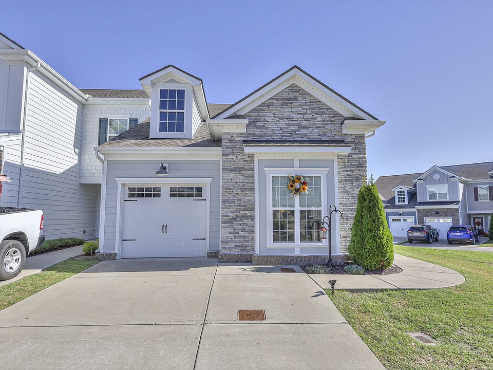 Experience the epitome of style and comfort in this stunning 3-bedroom end-unit townhome, where modern design meets everyday living. Step into an inviting open floorplan that seamlessly connects the living, dining, and kitchen areas, creating the perfect space for both relaxation and entertaining. The luxurious vinyl plank flooring flows effortlessly throughout the main floor, while elegant crown molding adds a touch of sophistication. The heart of the home is the beautifully appointed kitchen, featuring quartz countertops, a butcher block island, ample cabinet space, and stainless appliances. Natural light pours in through the large windows. 1st floor Primary Bedroom. Upstairs, you'll find two additional well-sized bedrooms, ideal for guests, a home office, or your growing family. Outside, the private patio invites you to unwind in your own outdoor sanctuary. This townhome is just 4 years old and is only minutes away from Spring Hill's shopping, dining, & recreational opportunities.