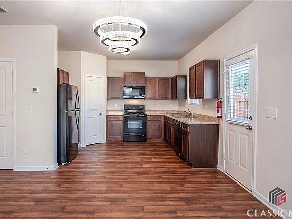 In the sweet, picturesque community of Creekside Manor, you’ll find the nearly new 4BR 2.5BA “Chatuge” model, built by LGI Homes in 2018 on a nice corner lot. Nicely maintained, you’ll love the open concept floor plan of the main living space. Gorgeous amber-toned hardwoods lead the eye from the foyer through to the glittering crystal chandelier where you’ll gather with guests to dine. Your kitchen is open and spacious with earth-toned countertops that pair perfectly with the chocolate stain on the cabinets. You’ll love the convenience of the corner walk-in pantry! Your living room is carpeted and cozy, with an abundance of windows for exceptional ambient light. Upstairs, four bedrooms include an owners suite with large walk-in closet and three guest rooms. Don’t need all that space? Make one room into an office or play room! Another full bath and a conveniently located laundry room also share the upper level. Outside, your back yard is fully fenced with just enough room to host a sizeable gathering. Dine al-fresco, or hold your football gatherings here! This adorable community includes a pond, pavilion and children’s playground for additional entertainment options. Located just off 78, this home is just minutes from downtown Athens, Watkinsville or Bogart. This is a wonderful home for a primary residence or lovely rental. Must see!