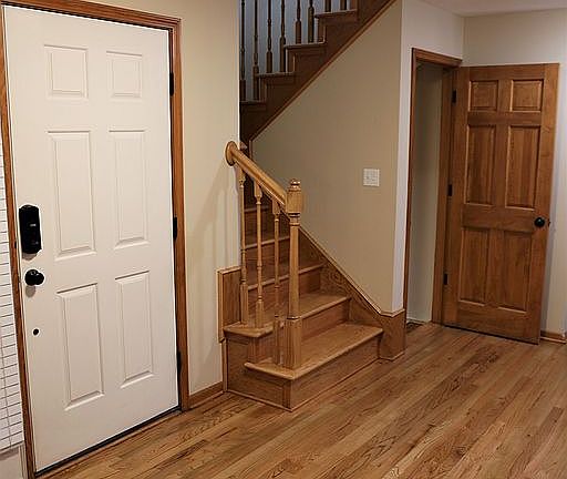 Beautiful/polished house situated in a cul-de-sac on a huge lot. This house offers many updates-from porcelain tile floors in the basement to blinds with room darkening & insulated motorized blinds throughout the house, to the TARDIS closet in the 5th bedroom that leads to a game room and more!!! Hardwood floors and granite countertops on the main floor. Deck off the dining room and another from the main level bedroom. Walk out basement leads to a landscaped yard.