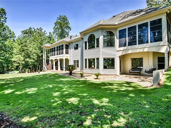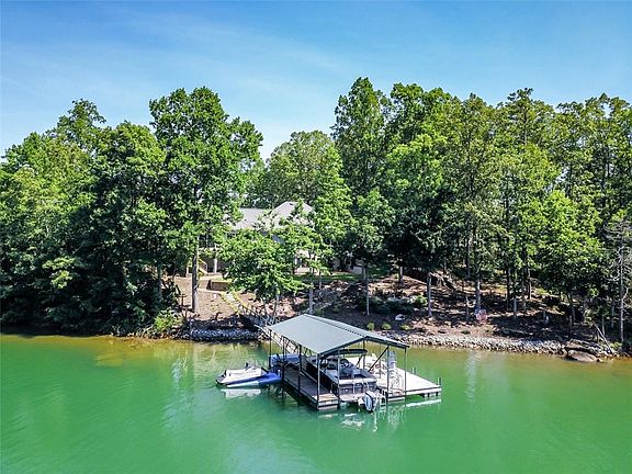 Enjoy casual Lake Keowee waterfront living in this custom home that is absolutely perfect for outdoor entertaining. The house is situated on .77 acres with approximately 133 feet of waterfront. Imagine your friends visiting you by boat, pulling up to your covered dock on gorgeous deep water, tieing up, and enjoying the lake! Swimming, kayaking, floating on noodles, sitting around the fire-pit then walking up to the house along lighted walkways to the lower level, covered patio. And, the privacy is wonderful. The circular driveway leads to a covered, rocking chair front porch with stamped concrete design in a rustic, wood plank flooring pattern. The first thing you see through the glass front doors is the water! The foyer immediately opens to a Great room with high ceilings and architectural Anderson windows framing the lake. To the right is the dining room that adjoins the large kitchen with center island, granite counters. Enjoy gathering around the bar while entertaining since the living space is so open. The three season porch which is used as this couple's favorite space. The laundry is also on the main level. On the opposite side of the house to the left of the Great Room is the Master bedroom suite with its own 3-season porch and the stunning, designer bathroom! The owner conceived of the unique styling of the glass and tile shower with a soaker bathtub contained within it. This is a one of a kind design. The walk-in closets feature custom closet shelving. A powder room completes the first-floor living space. The lower level family room features tiled floor and lots of windows for great Lake Keowee views. There are two additional bedrooms on either side of the family room. Each has excellent views and one has direct access to the full bath. A fourth sleeping room will accommodate overflow guests. There is a workroom that has double doors that lead directly to the outside covered patio..lighting in many of the rooms as well as surround sound. Professional landscaping and landscape lighting, exceptional outdoor living and easy access to the lake!