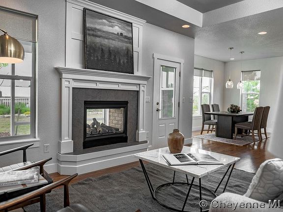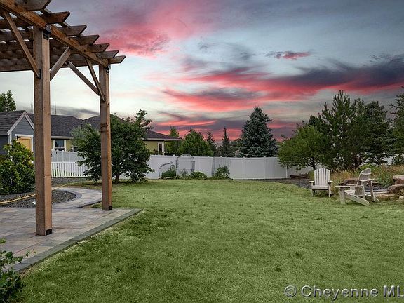 Privately nestled in one of Cheyenne's favorite neighborhoods, this impressive ranch style home in a cul-du-sac, has high end finishes and attention to detail throughout. It boasts 5 spacious bedrooms, 3 bathrooms and an expansive 3 car garage. Inside, you'll appreciate and enjoy the open concept living room including a double-sided gas fireplace, beautiful hardwood floors, high ceilings, and an abundance of natural light pouring in through windows creating an inviting atmosphere. The kitchen will be a dream for any cook with a spacious kitchen island, luxurious quartz countertops, custom cabinets, and sizeable pantry and double ovens. Retreat to the primary bedroom suite with a large walk-in closet and 5 piece bathroom and experience the functionality and convenience of a main floor laundry/mud room. You'll love the finished basement which includes 2 spacious bedrooms, wet bar, storage room, fireplace and entertainment possibilities. Outback, enjoy the partially enclosed sunroom, bar-b-que under the covered gazebo or take in a western sunset at the firepit. Step out front to the covered patio and enjoy your favorite libation under the hops-covered trellis-what a way to relax after a long day. Take advantage of the neighborhood's walking paths and well-manicured parks, providing endless opportunities for outdoor enjoyment. Additional highlights include master gardener-like landscaping including fruit trees and native grasses, fenced backyard, shed, sprinkler system and air conditioning. Schedule your private showing with us today and experience luxury living at its best.