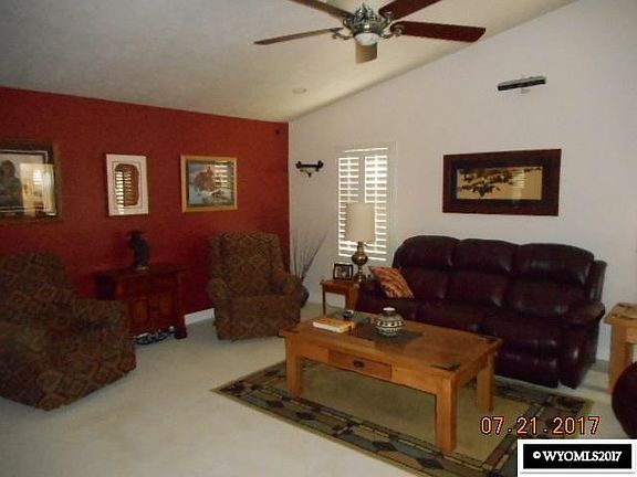 Turn Key, This spacious Ranch Style Home offers 5 bedrooms, 3 bathrooms, large kitchen with granite counter tops, open floor plan, cathedral ceilings, 2 sided fireplace, plantation shutters, over sized RV pad, fully finished basement with wet bar, spa shower, extra storage off the garage, storage shed and much more. Call the Michael Eastman Group to preview this home today at 307-789-4411