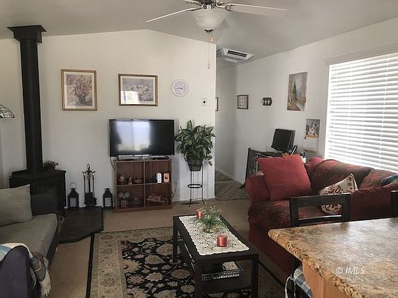 Two Bedroom/One bath home with lots of custom shaker-style cabinetry, gas stove, large pantry and other upgrades. Enjoy impressive views from your kitchen table and from your back yard. Stay warm with the ambiance of a beautiful wood stove or set the thermostat on the F/A heater. Home is well insulated and economical. Relax on your deck or take a hike up Big Pine Creek and go fishing. Tranquility found at this Glacier View Mobile Park surrounded on three sides by open land. Includes extra large shed with windows for your storage needs. Front porch has been extended and doggy door in back. Space rent is $395/month.
