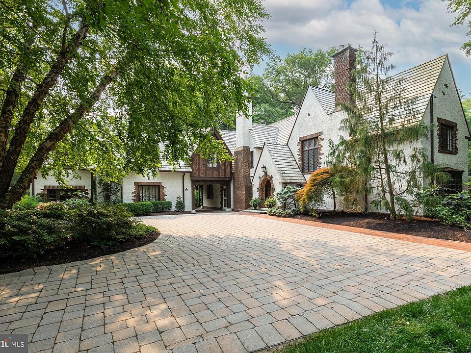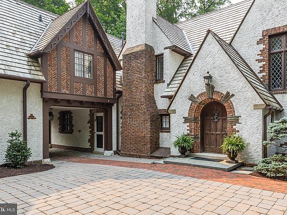 As you enter the front courtyard from the brick paver circular drive you will be surrounded by unsurpassed quality and charm. An enchanting classic tudor that overlooks the Moorestown Field Club golf course is reminiscent of an English manor. Situated on 1.61 professionally designed and landscaped private acres in a neighborhood setting, this magnificent residence skillfully combines an air of grandeur with a feeling of comfort and livability. Its many open spaces-both inside and outdoors-offer a wealth of possibilities for large-scale entertaining, while its five bedrooms, five bathrooms make this ideal for family living. The rich walnut paneling, and the archways and curved doors of the entrance gallery are hallmarks of this fine residence. To the right of the entrance hall is a richly paneled den with gas fireplace, built-ins and a noteworthy view. Gracious and inviting, the sunlit living room features another gas fireplace and French doors to the bluestone patio and parklike views of yard and golf course. Currently used as a living room/dining room combo, this large space can be transformed for several purposes. Remodeled chef’s kitchen includes SubZero refrigerator, farmhouse stainless sink, Bosch Dishwasher, Wolf gas 6 burner range with griddle and double oven, built in microwave and is perfectly designed for today’s standards. The new catering kitchen affords additional storage, soapstone counter, another dishwasher, sink, oven, and a wine frig and ice maker. The cozy family room with custom built-ins is adjacent to the media room. A remodeled powder room completes the first floor. Enter the 2nd floor from the grand foyer staircase or the back staircase that will take you to the second floor family room with the 3rd gas fireplace, two princess suites, one Jack and Jill suite and the spacious primary suite with dressing room and spacious full bath. All baths have been beautifully updated.There is a laundry room on the second floor and the basement. Magnificent grounds include a walled garden with ironwork gates, bluestone patio, an in-ground pool, and extensive professional landscaping. Other features include beautiful leaded glass windows, ample closets, cedar roof (2020), newer HVAC and hot water heater, walk-up attic, large 2 car modern garage with carriage house detail. The pool is being sold “as-is”.