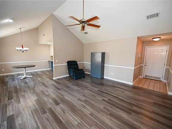 One level living at its best! ENORMOUS fully fenced backyard with an incredible covered patio! Updates include durable LVP flooring (living, dining, kitchen, & primary bedroom), stainless kitchen appliances, & recessed lighting. The kitchen offers excellent storage, including additional cabinetry/shelving in the attached WI pantry/laundry room. Dining spaces include both a breakfast bar & an inviting family-style dining area, which flows into the large living room, where soaring vaulted ceilings add to the airy, open ambience! The spacious primary bedroom boasts large windows, a fabulous WI closet, & an en-suite bath with fantastic tiled step-in shower & separate vanity/dressing area with tons of storage! Bedrooms 2-3, which share a hall bath, each offer awesome closets with structured shelving. Double garage includes amazing workshop area! Security system. Convenient location with easy access to Hwy 280, downtown Opelika, & Tiger Town/exit 58.