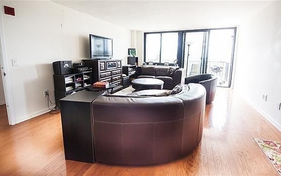 AVAILABLE 04/01/2022 - Spacious 1300 sq ft. - True 2 bedroom unit with south eastern exposure. NYC, Hudson River and Downtown Jersey City views from large terrace. Featuring kitchen with granite counter-tops, GE SS appliances, plenty of closet space, washer/dryer in unit laundry room, hardwood floors throughout, beautiful tiled bathrooms, and 1 garage parking space and internet INCLUDED. Pets limited with landlords approval. Amenities include: 24hr concierge, residents lounge, fitness center, private courtyard and shuttle to/from the PATH. Don't miss this! The tenant pays the broker fee. Security deposit 1.5 months. The tenant is responsible for PSEG (gas, electric).1 garage parking space and internet INCLUDED. Pets limited with landlords approval.