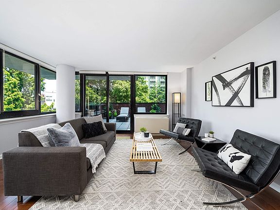 Experience modern luxury in this Toll Brothers Construction. Impeccably maintained and highly sought-after “B”line unit. This 1,471 square-foot contemporary corner unit features two bedrooms, two baths, and a host of upgrades. Bathed in natural sunlight, the spacious living area boasts a ONE OF A KIND approximately 700 square-foot private raised terrace that overlooks two beautifully landscaped courtyards. The king-size master suite includes his and her closets and a luxurious five-piece en suite bathroom. The expansive open floor plan includes a dramatic great living room, ideal for entertaining, that flows seamlessly onto the private deck. The gourmet kitchen is equipped with top-of-the-line stainless steel appliances, a custom backsplash, and elegant birch hardwood flooring throughout. This unit is a must-see, complete with a dedicated garage parking space. Brand new renovated hallways in progress. Contact us today to schedule a viewing!