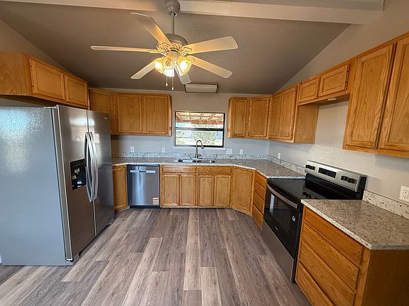 Welcome to this newly remodeled 2-bedroom, 2-bathroom home located in the rural setting of Clovis, NM. This home is a perfect blend of comfort and modernity, featuring all-new appliances, including a smooth top electric range, dishwasher and a double-door refrigerator with an icemaker and water dispenser. The eat-in country kitchen and bathrooms boast elegant granite countertops, and the master bathroom is equipped with a garden tub and walk-in shower. The house is filled with natural light, enhancing the beauty of the wood grain LVP flooring. The insulated low E windows and the washer and dryer in the laundry room add to the convenience. The home includes garbage disposal, central heat & air, and ceiling fans. The home also offers a large cupboard front porch, perfect for enjoying the serene surroundings. The property is conveniently located near Gattis Middle School. The tenant is responsible for electric and trash. The property boosts a private well for water source. The home's pet policy is a maximum of two pets allowed with owner approval and a monthly pet fee. The tenant is not responsible for maintaining the entire acre, making this home a low-maintenance choice. Experience the tranquility of country living in this beautiful home.