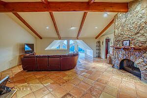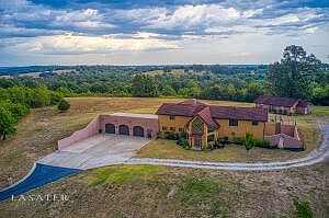 You will never want to leave this 4 bd, 3 ba home on 25 acres m/l! Large rooms with numerous windows to enjoy the views. The master bdrm has a gorgeous bathroom of double glass sinks, extra cabinets, walk-in shower with a glass block wall & tub. The kitchen includes a double oven, warming oven, gas stove, lots of cabinets and pantry space with a wet bar/butler's kitchen near the massive dining room. Both levels of the home have a wood-burning fireplace and beautiful tile floors. The 3-car garage has a steel beamed ceiling & wired for a generator. Covered porch, two concrete patios, pole barn and a guest house as nice as the main house. Three new HVAC systems in the main house & guest house. Close to the Buffalo River, Bull Shoals Lake, & White River. All #'s approximate